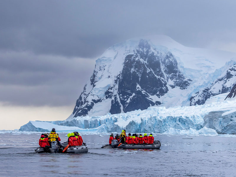 I recall a day at Neko Harbour when the landing had finished, and we were bringing our guests on board. There were around 20 people left on the landing site when the wind shifted and picked up, pushing bergy bits and sea ice fragments and blocking our landing spot. It took our amazing boat drivers more than two hours to make their way though the obstacles and return us to the ship’s comforting warmth.
